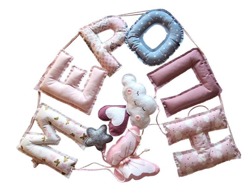 Τα υφασμάτινα γράμματα είναι μια υπέροχη ιδέα για διακόσμηση παιδικού δωματίου! Εκτός από αισθητική, προσφέρουν και συναισθηματική αξία – ειδικά όταν φτιάχνονται στο χέρι και περιλαμβάνουν το όνομα του παιδιού.